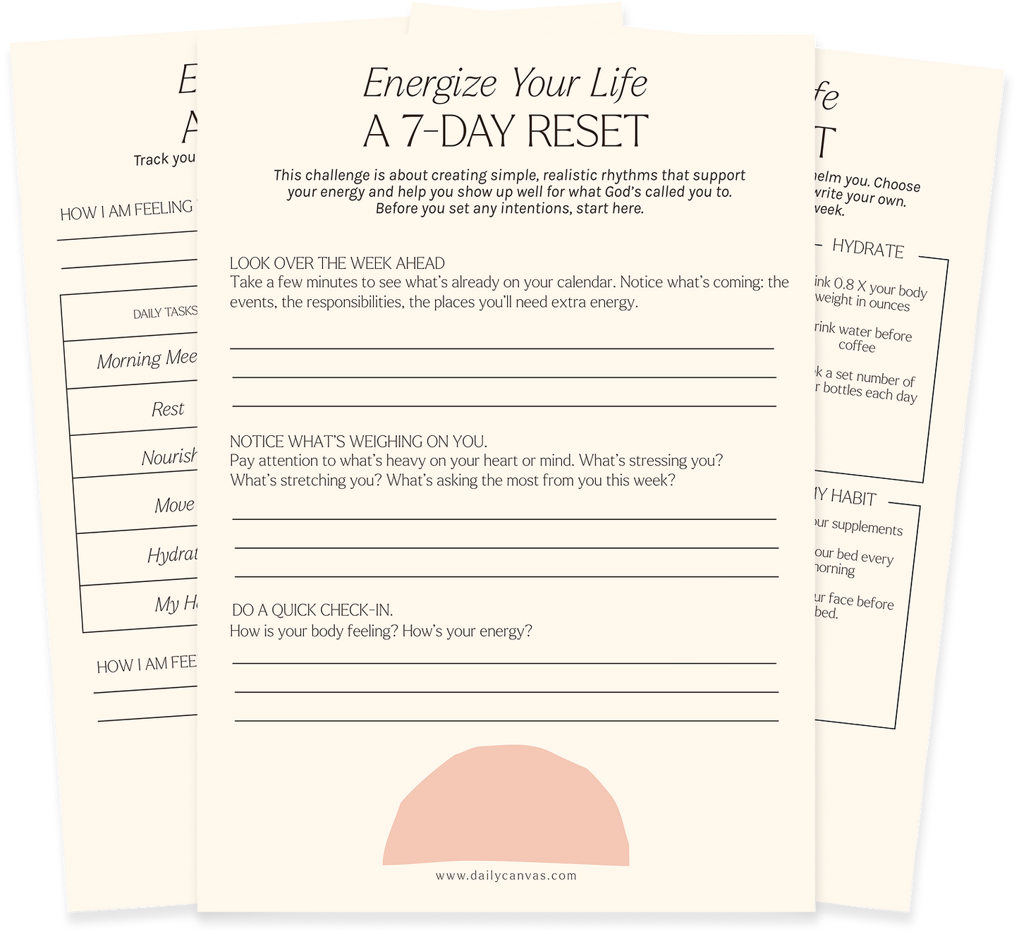 Get Ashley’s Energize Your Life: A 7-Day Reset for FREE and build simple, realistic rhythms that support your energy and help you show up for what God has called you to.