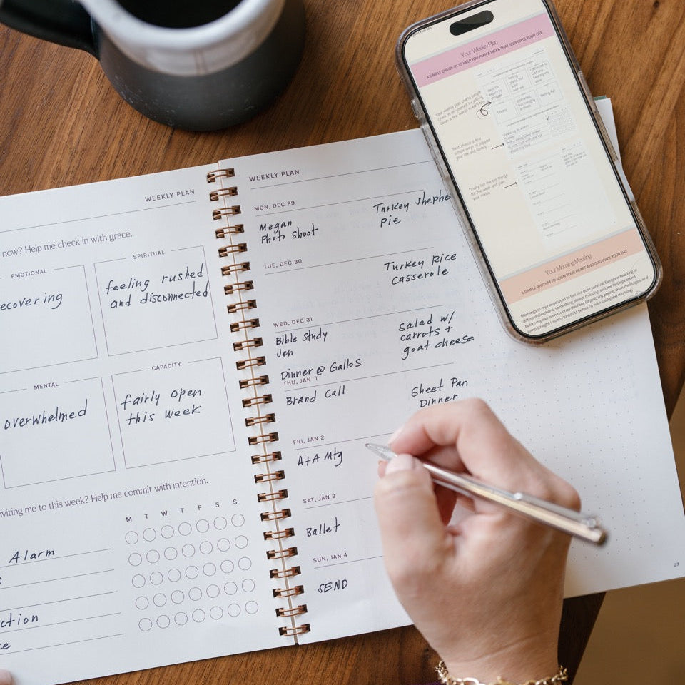Begin each week by noticing your emotional, physical, and spiritual capacity. This check-in helps you plan with awareness so you can lead your home and work with clarity and grace.