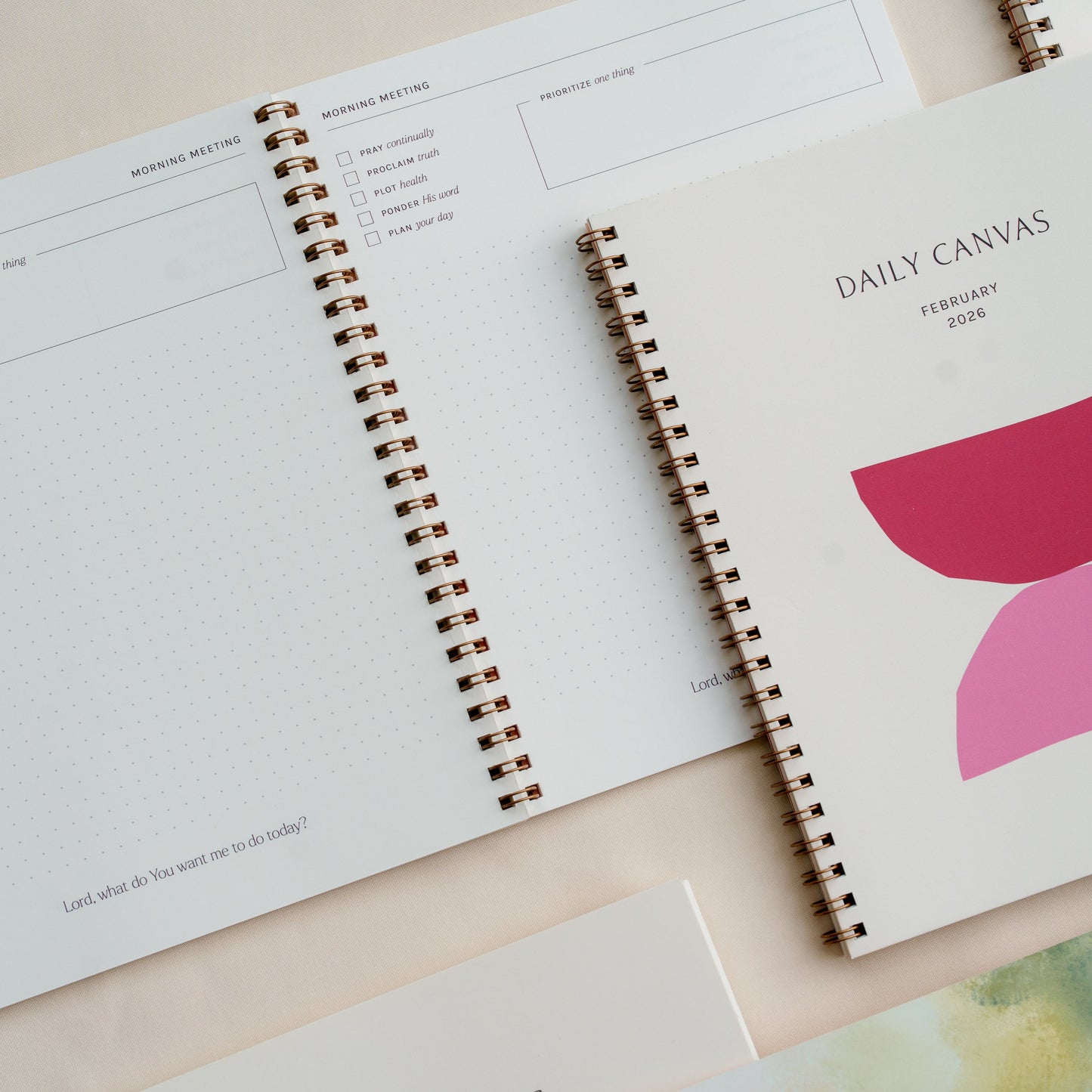 When you follow these rhythms, planning stops feeling like a chore and starts becoming a conversation with God. Daily Canvas helps you lead your home and your days from a place of clarity and confidence, knowing you're not carrying it all alone. Over time, the pages become more than lists or schedules — they become a reflection of partnership, growth, and grace in motion.